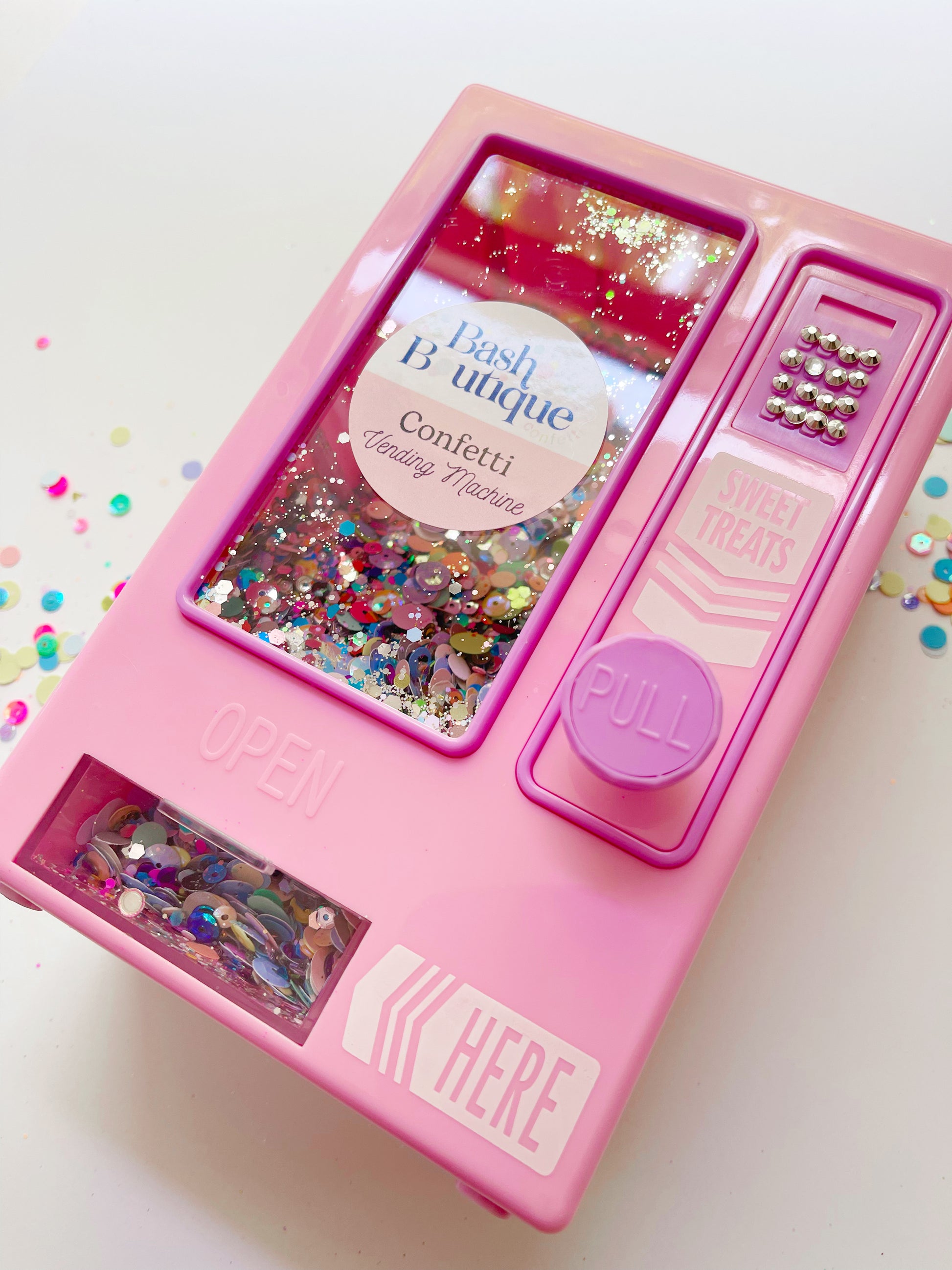 Does it get any better than this? The Confetti Vending Machine comes with one 4 oz jar of confetti!!