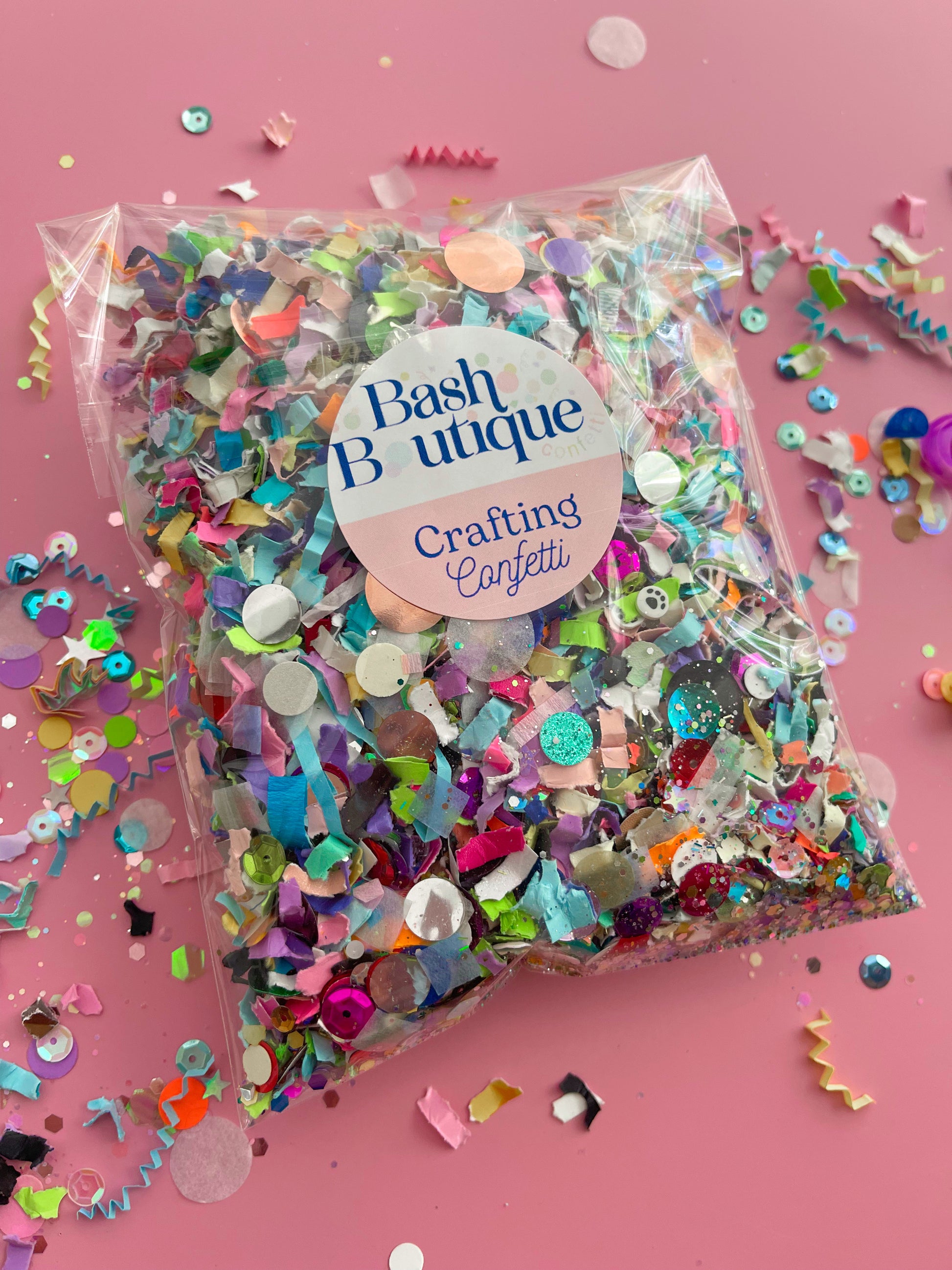 One large 5 x8 bag of colorful crafting confetti. Each bag is a random mix of colors.