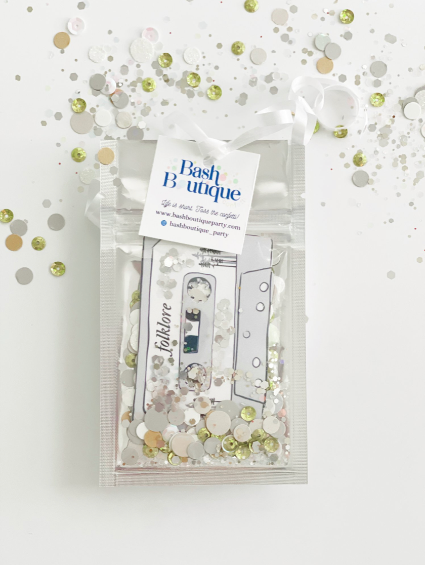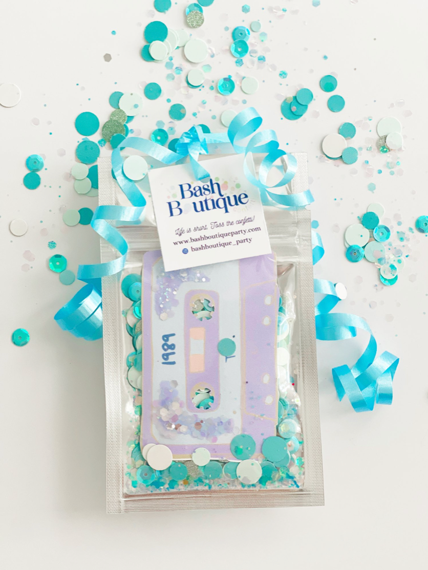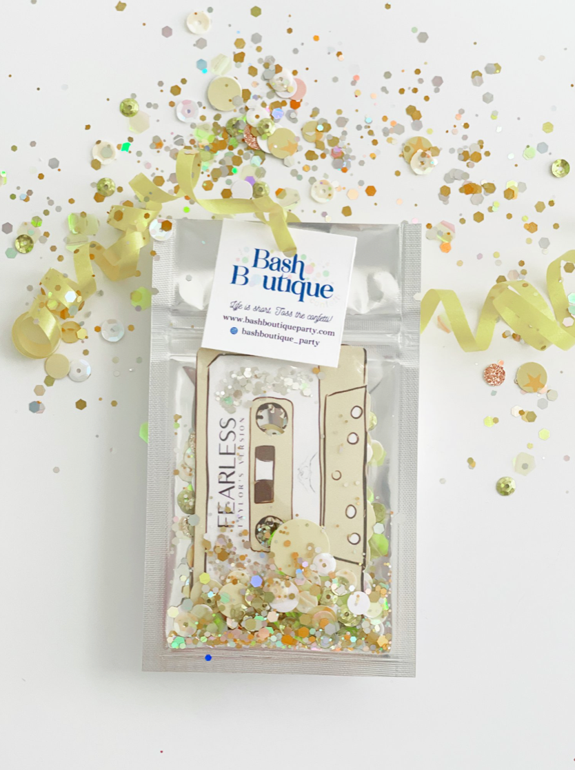 “There’s glitter on the floor after the party.” The Eras Tour Solids Confetti Collection is here! “Bedazzled” with an Eras Confetti Cassette Tape Accent to match each mix. The listing is for one bag of confetti and one cassette tape. Please choose which Era you would like to purchase at checkout.