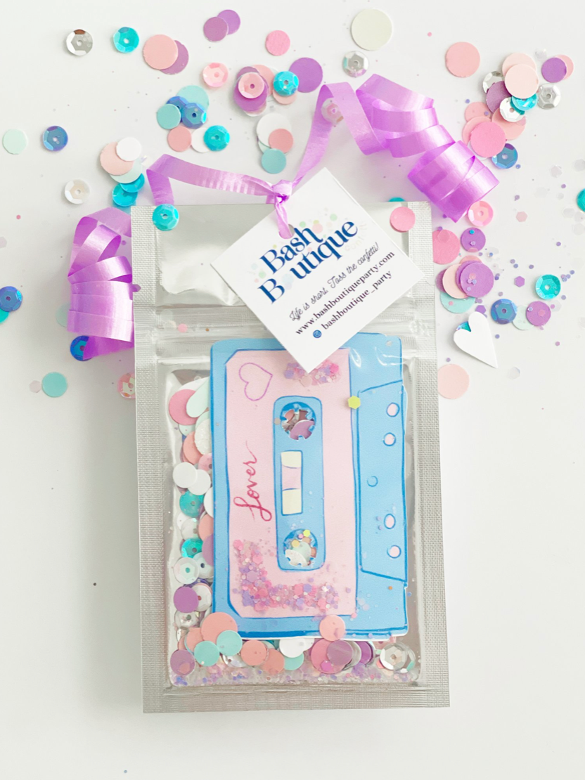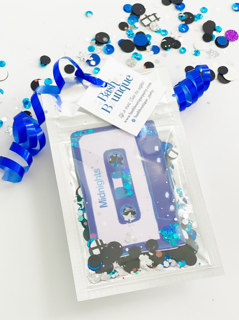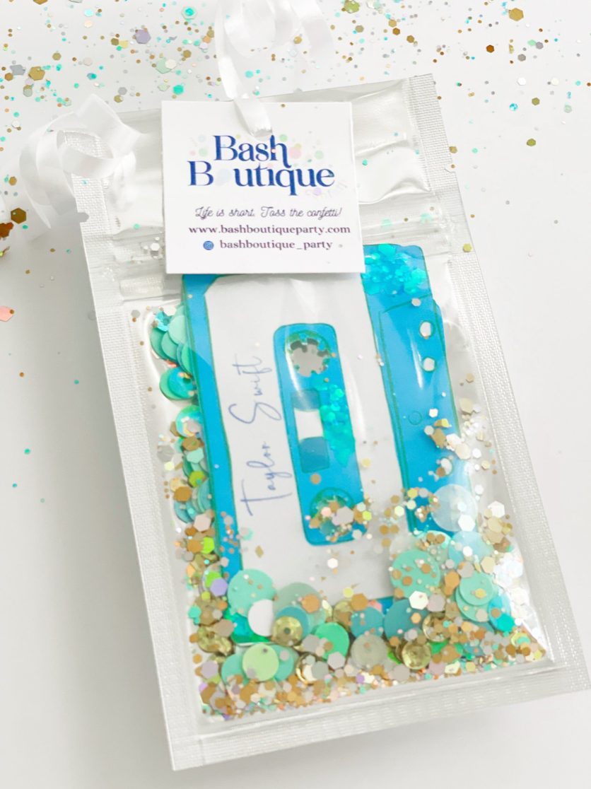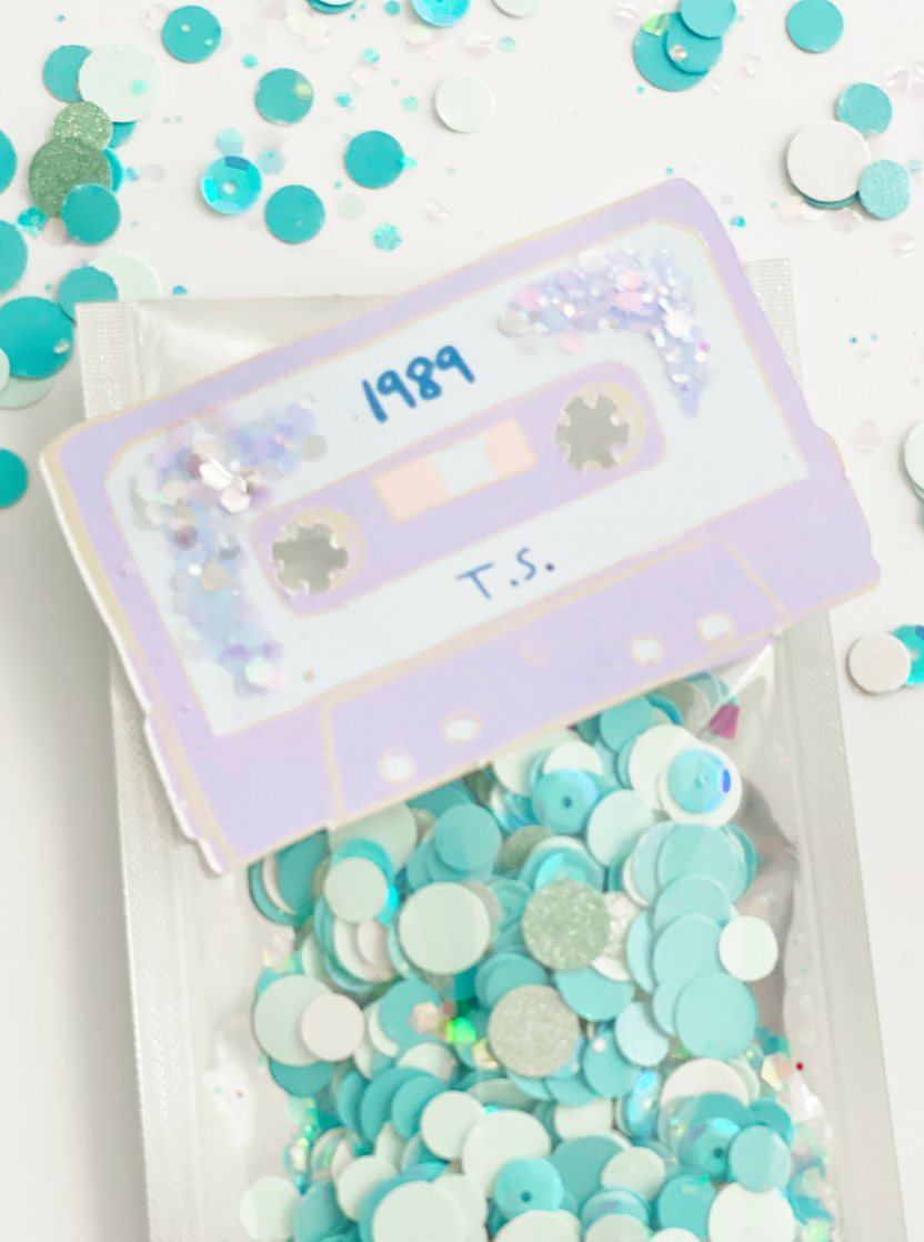 “There’s glitter on the floor after the party.” The Eras Tour Solids Confetti Collection is here! “Bedazzled” with an Eras Confetti Cassette Tape Accent to match each mix. The listing is for one bag of confetti and one cassette tape. Please choose which Era you would like to purchase at checkout.