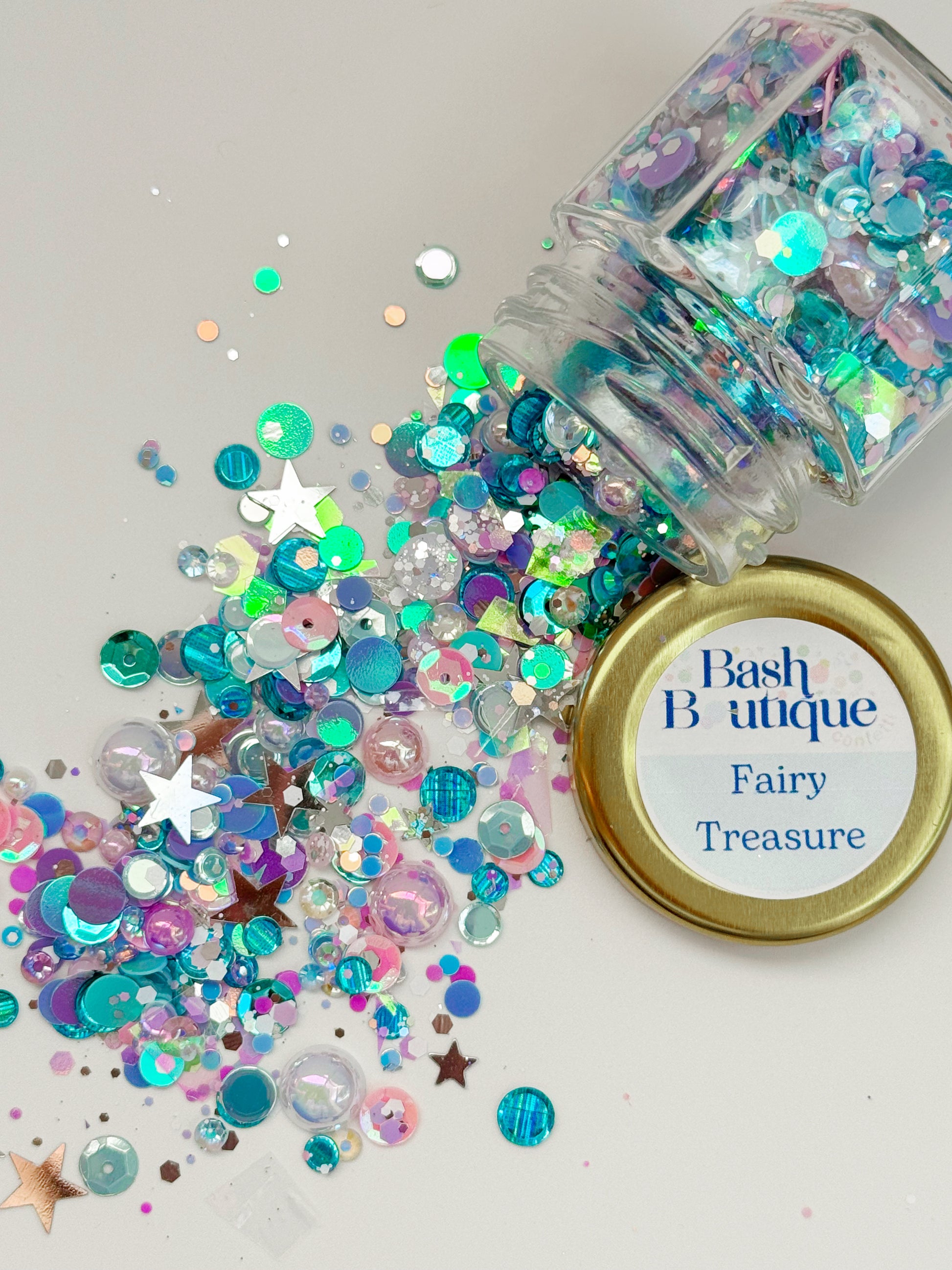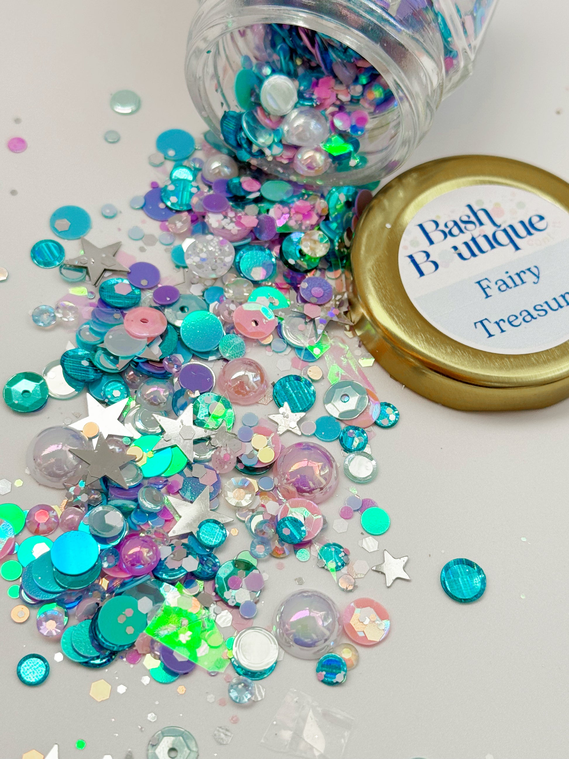 A special confetti mix consisting solely of metallic sequins, gems and glitter. One 2 oz jar of sparkly goodness.