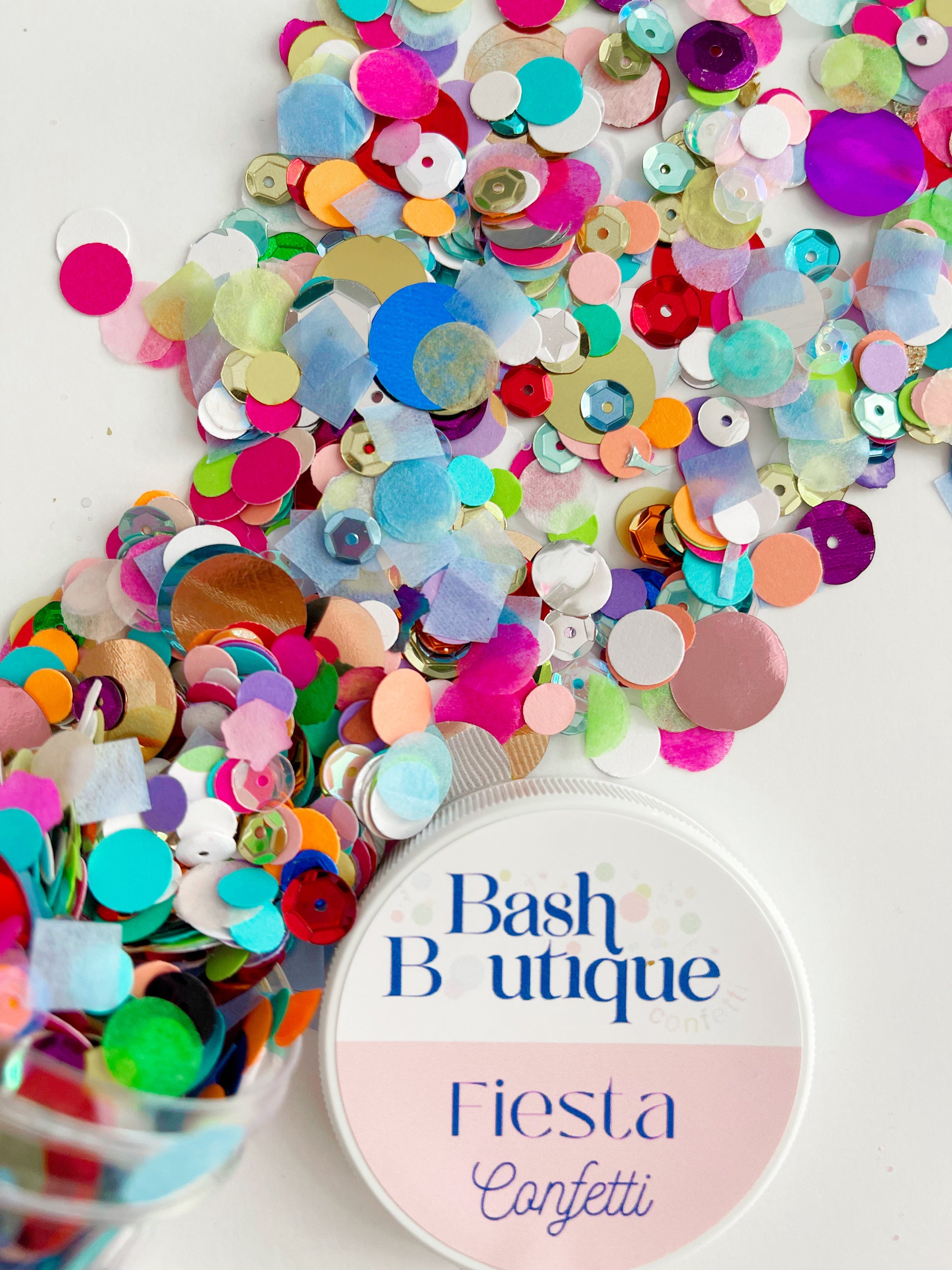 Lots of color, tons of sequins sans the glitter. Still beautiful, full of sparkle and hand pressed. A confetti beautiful mix for any occasion that requires tossing confetti with less mess.