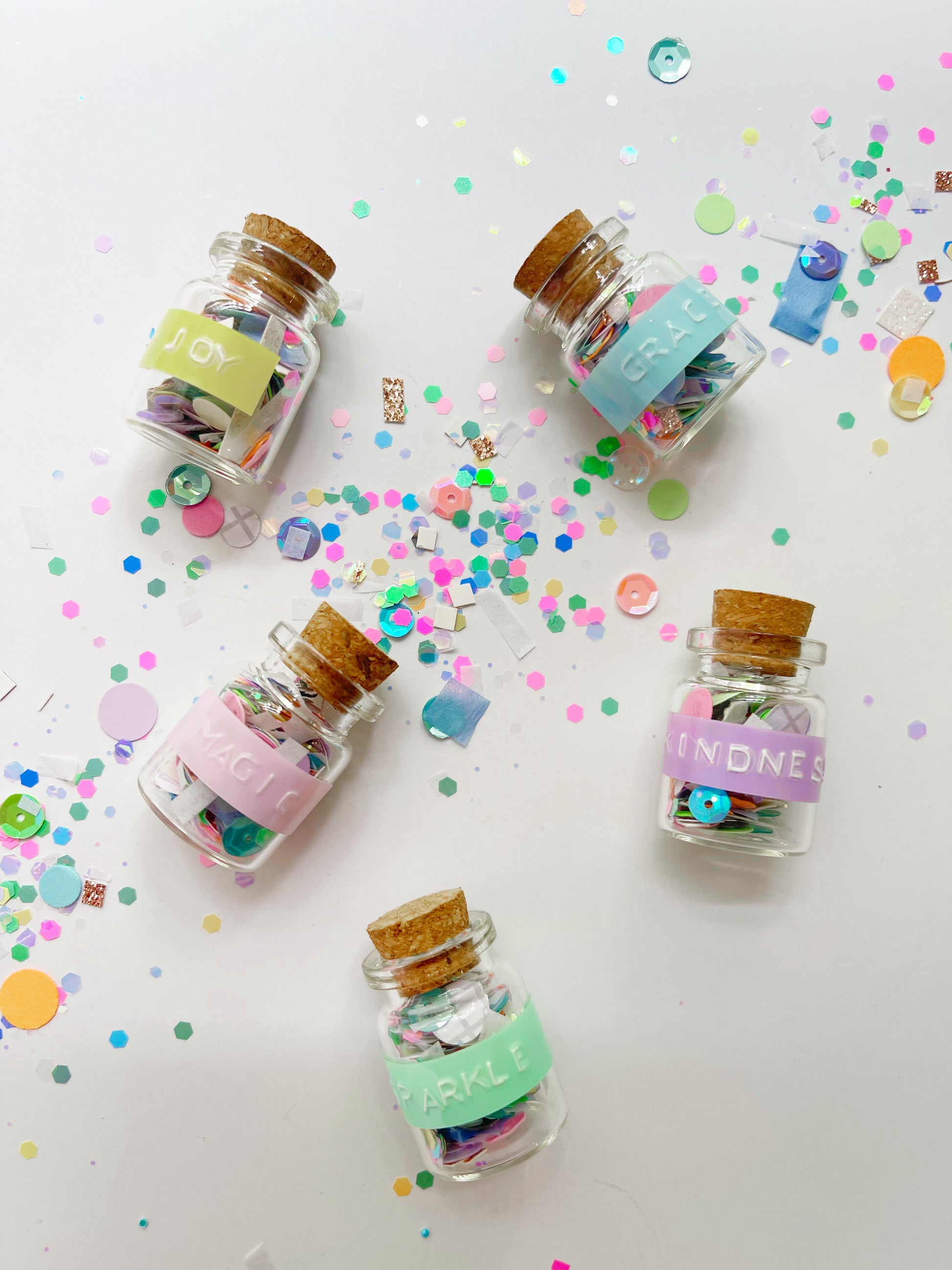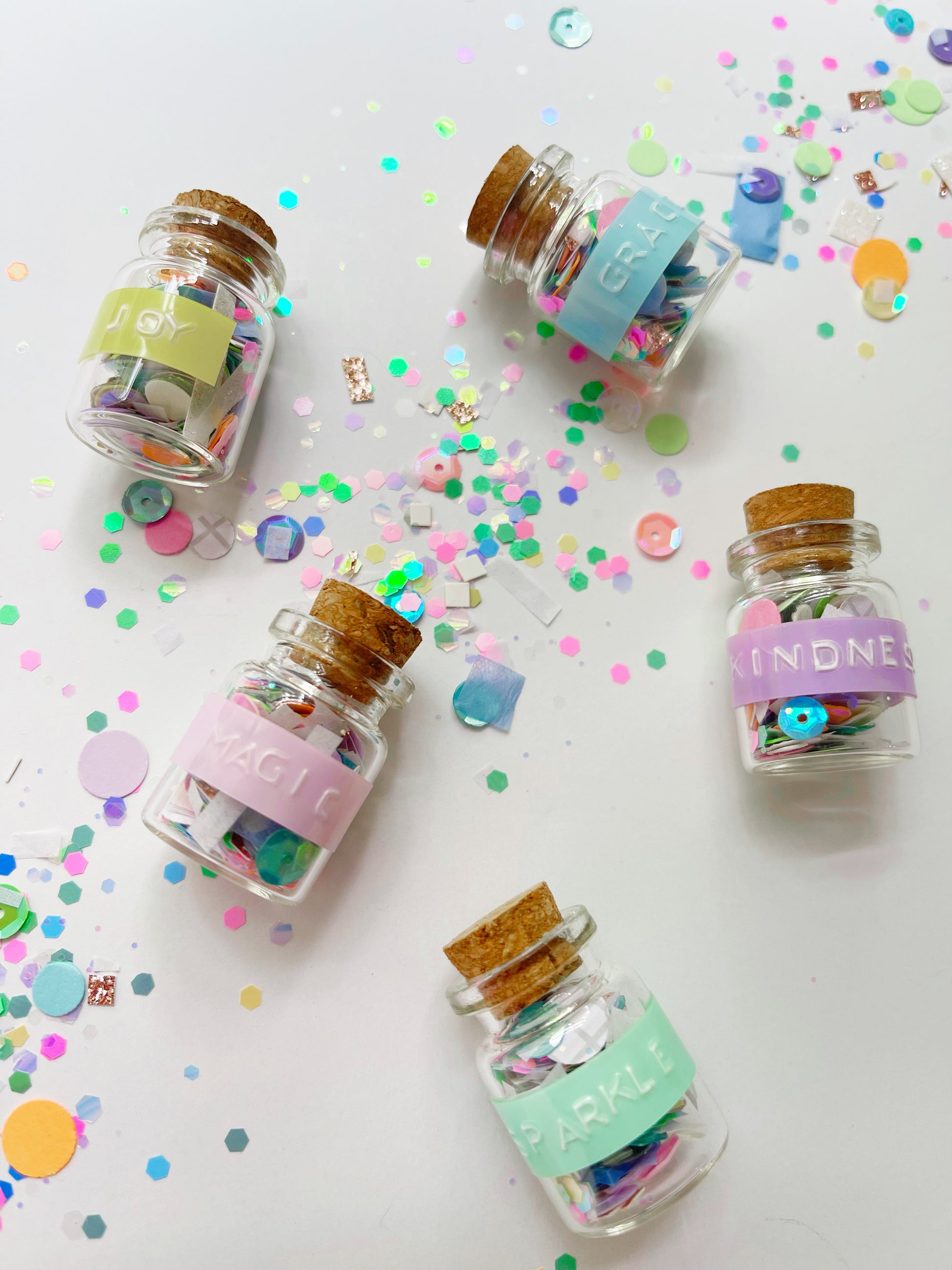 Because we could all use a "little extra" joy, kindness, magic, grace and sparkle. 5 small jars of sparkly confetti to remind you of how amazing you are. Also, a fabulous gift!