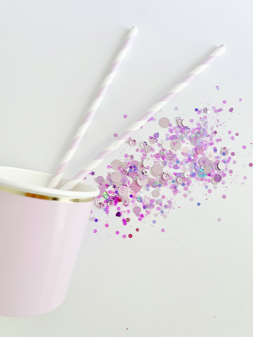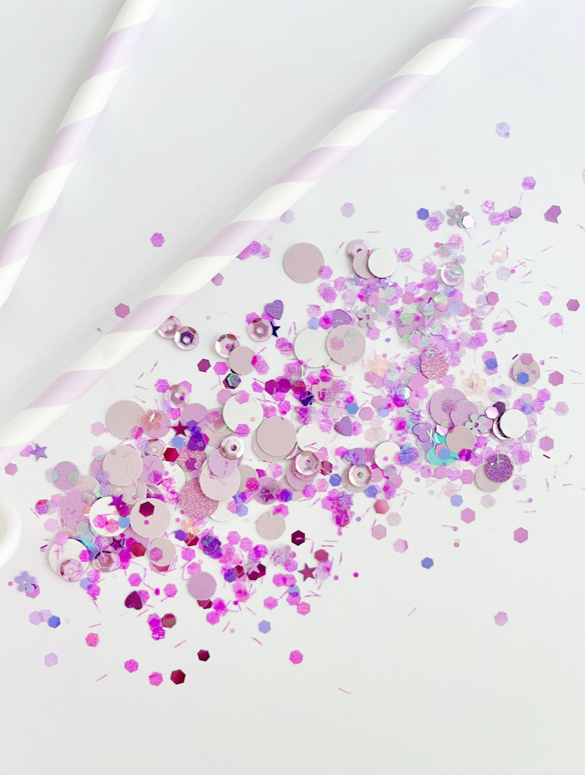 No, not inspired by the beautiful T Swift herself but instead inspired by our sweet Hazel who just loves anything lavender. Confetti colors ranging in lavender hues, mixed with sequins and glitter in the same hues. Take one look at this mix and you will smell lavender in the distance. This monochromatic confetti mix is perfect for: